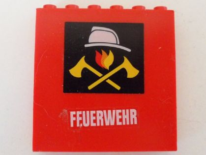 Brick 1 x 6 x 5 with Fire Logo and White 'FEUERWEHR' Pattern (Stickers) - Set 7240