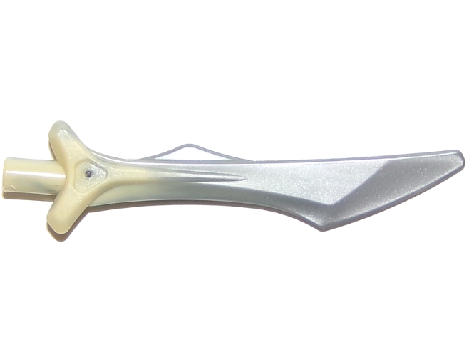 Minifigure, Weapon Sword, Blade with Bar and Spike on Side with Marbled Flat Silver Pattern