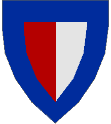 Minifigure, Shield Triangular Short with Red and Gray Halves and Blue Border Pattern