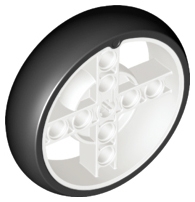Wheel 56 x 14 Technic with Axle Hole and 8 Pin Holes with Molded Black Hard Rubber Tire Pattern