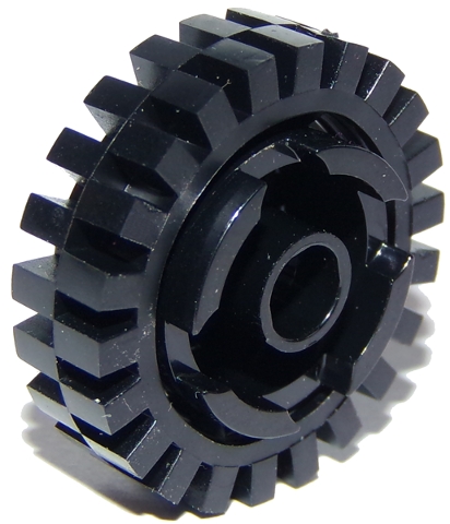 Brick, Round 2 x 2 with Axle Hole with Black Tire 24mm D. x 8mm Offset Tread - Interior Ridges (3941 / 3483)