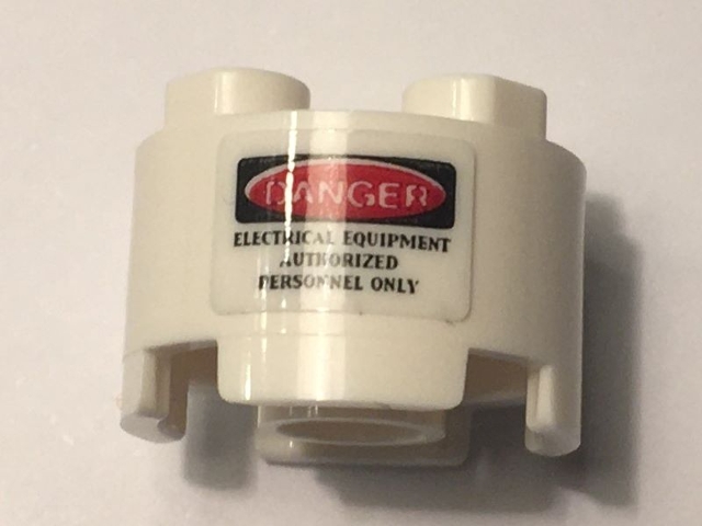 Brick, Round 2 x 2 with Axle Hole with 'DANGER' and 'ELECTRICAL EQUIPMENT AUTHORIZED PERSONNEL ONLY' Pattern (Sticker) - Set 10274