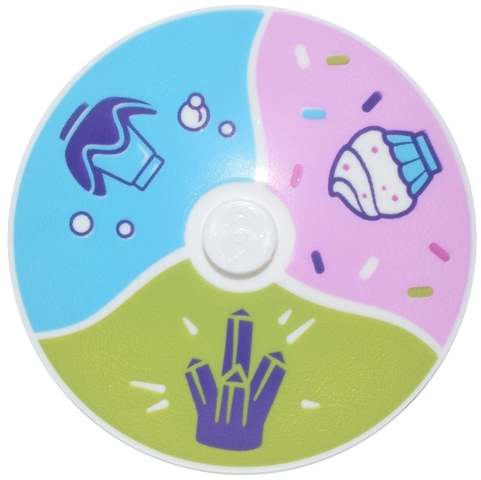 Dish 4 x 4 Inverted (Radar) with Solid Stud with Dark Purple Crystal and Flower with Cone, Cupcake with White Frosting, Sprinkles on Lime, Bright Pink and Medium Azure Background Pattern