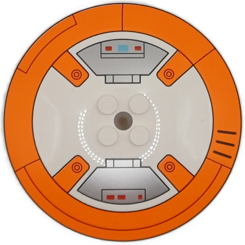 Dish 8 x 8 Inverted (Radar) - Solid Studs with SW BB-8 Droid Orange Circle and Silver Control Panels with Red and Medium Blue Lights Pattern