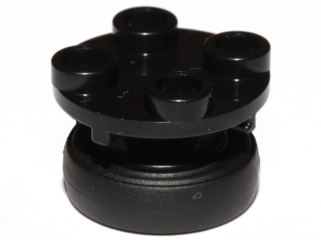 Plate, Round 2 x 2 Thin with Rotation Stem with Black Tire 14mm D. x 4mm Smooth Small Single (40145 / 59895)