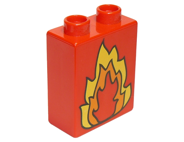 Duplo, Brick 1 x 2 x 2 with Fire with Orange and Yellow Flames Pattern