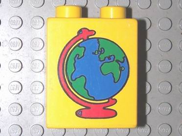 Duplo, Brick 1 x 2 x 2 with Globe Pattern