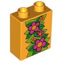 Duplo, Brick 1 x 2 x 2 with Large Flowers and Leaves Pattern (Ivy)