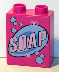 Duplo, Brick 1 x 2 x 2 with 'SOAP' text Pattern