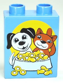 Duplo, Brick 1 x 2 x 2 with Dog and Cat with Food Bowl Pattern