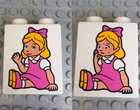 Duplo, Brick 1 x 2 x 2 with Girl with Spots and No Spots on Face Pattern