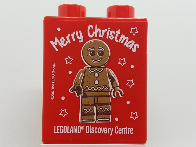 Duplo, Brick 1 x 2 x 2 with Merry Christmas LEGOLAND Discovery Centre Gingerbread Man Pattern