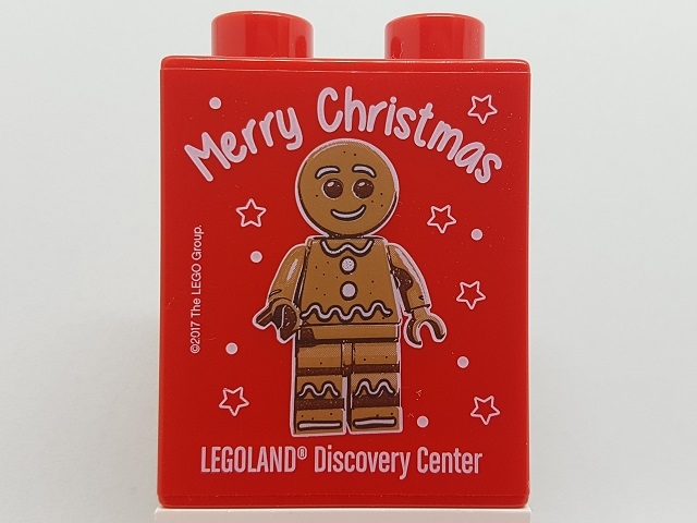 Duplo, Brick 1 x 2 x 2 with Merry Christmas LEGOLAND Discovery Center Gingerbread Man Pattern