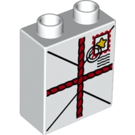 Duplo, Brick 1 x 2 x 2 with Tied Parcel with Postmark Pattern