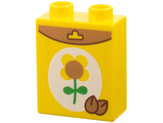 Duplo, Brick 1 x 2 x 2 with Seed Packet, Medium Nougat Seeds, Flower on White Background Pattern
