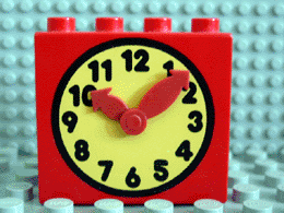 Duplo, Brick 1 x 4 x 3 with Movable Red Clock Hands and Yellow Clock Face with Black Numbers Pattern