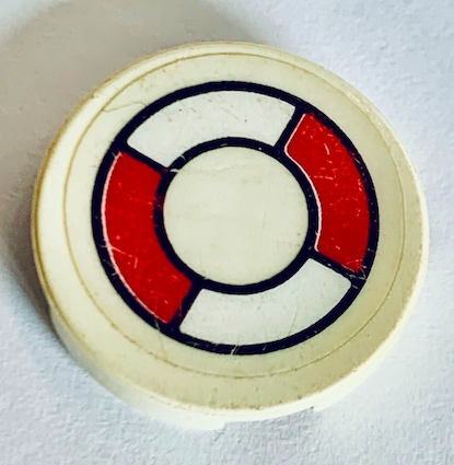 Tile, Round 2 x 2 with Red and White Life Preserver Pattern (Sticker) - Sets 2962 / 6479 / 6540 / 6541 / 6559 / 6598