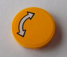 Tile, Round 2 x 2 with Black Outlined White Curved Arrow Double on Yellow Background Pattern (Sticker) - Set 7939
