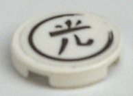 Tile, Round 2 x 2 with Black Japanese Logogram '光' (Light) Pattern (Sticker) - Sets 7706 / 7709
