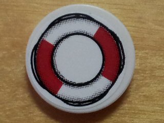 Tile, Round 2 x 2 with Red and White Life Preserver on Rope Outline Pattern (Sticker) - Set 8426