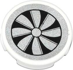 Tile, Round 2 x 2 with Silver Fan Blades Pattern (Sticker) - Set 60014