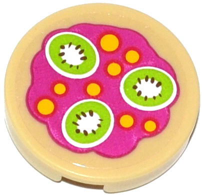 Tile, Round 2 x 2 with Yellow Spots and 3 Kiwi Fruit Slices Pattern (Sticker) - Set 41033