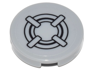Tile, Round 2 x 2 with Black Circles and Bars (Hot Plate) Pattern (Sticker) - Set 4840