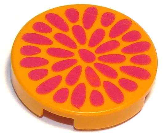 Tile, Round 2 x 2 with Radiating Magenta Teardrops / Flower Center Pattern