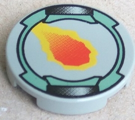 Tile, Round 2 x 2 with Flame and Sand Green Border Pattern