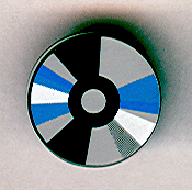 Tile, Round 2 x 2 with Compact Disc (CD) Surface with Black, Blue, and White Sectors Pattern