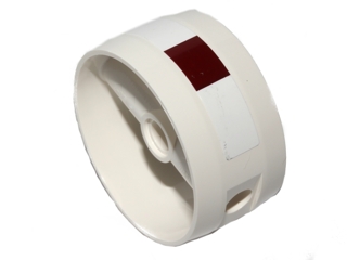 Cylinder 4 x 4 x 1 2/3 with Pin Holes and Center Bar with Dark Red Rectangle with White Sides Pattern (Sticker) - Set 75004