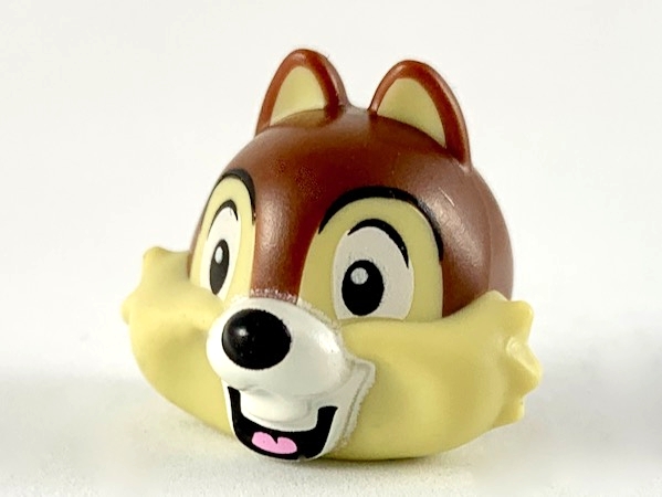Minifigure, Head, Modified Chipmunk with Centered Teeth, Reddish Brown Fur and Black Nose Pattern (Chip)