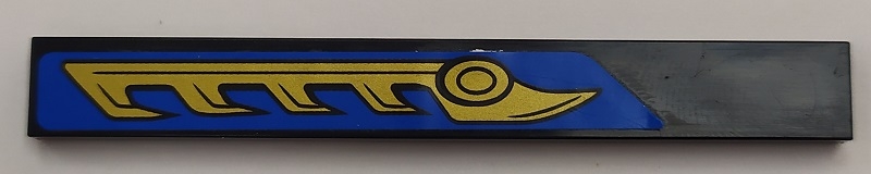 Tile 1 x 8 with Gold Blade with Serrated Teeth on Blue Background Pattern Model Left Side (Sticker) - Set 70731