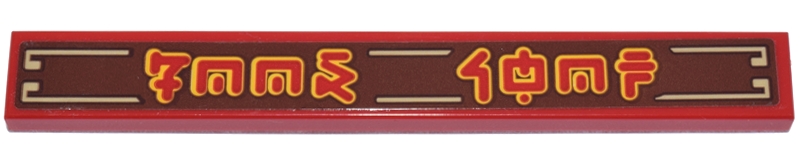 Tile 1 x 8 with Red and Yellow Ninjago Logogram 'FOOD SHOP' on Reddish Brown Background Pattern (Sticker) - Set 70657