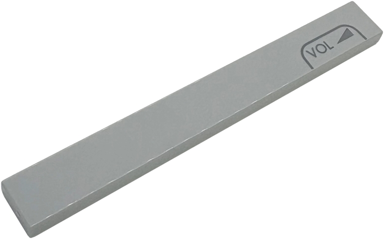 Tile 1 x 8 with Dark Bluish Gray Triangle, 'VOL' and Outline Pattern