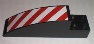 Slope, Curved 8 x 2 x 2 with 4 Recessed Studs with Red and White Danger Stripes Pattern Left (Sticker) - Set 7632
