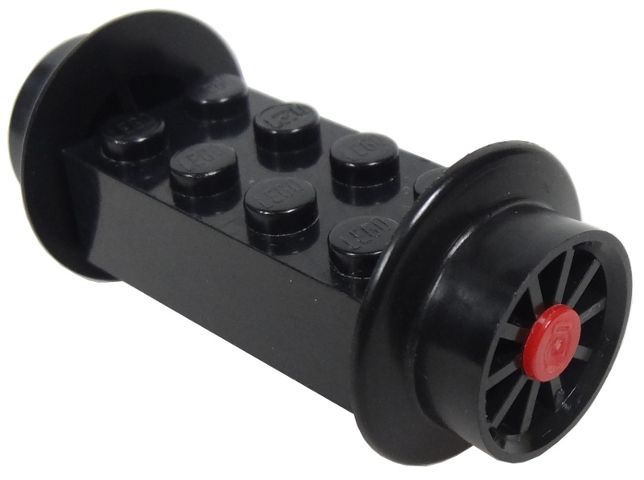 Brick, Modified 2 x 4 with Black Wheels, Train Spoked Small (23mm D.) and Red Pins (4180 / wheel3 / 2344)