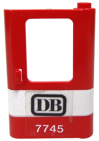 Door 1 x 4 x 5 Train Right, Thin Support at Bottom with White Stripe and 'DB 7745' Pattern (Sticker) - Set 7745