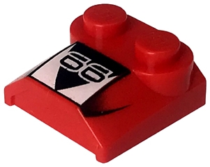 Slope, Curved 2 x 2 x 2/3 with 2 Studs and Curved Sides, Lip End with Stylized Number 66 on Black and White Triangles Pattern