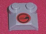 Slope, Curved 2 x 2 x 2/3 with 2 Studs and Curved Sides, Lip End with Red and Black Circle Pattern