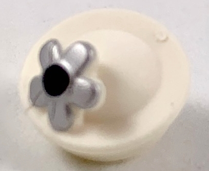 Minifigure, Hat with Small Pin, Pillbox Hat with Flower with Black Center and Silver Petals Pattern