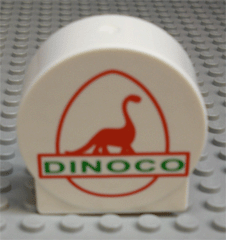 Duplo, Brick 1 x 2 x 2 Round Top with Red Dinosaur and Green 'DINOCO' Pattern