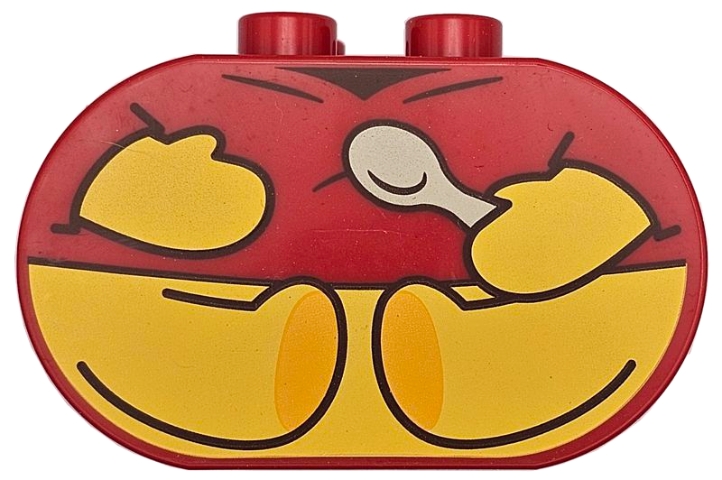Duplo, Brick 2 x 4 x 2 Rounded Ends with Yellow Teddy Bear Hands and Legs, Shirt with Dark Brown Creases, Tan Spoon Pattern (Winnie the Pooh Body)