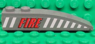 Slope, Curved 6 x 1 with 2 Studs with Red 'FIRE' and White Stripes Pattern Model Left Side (Sticker) - Set 7043
