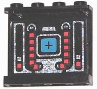 Panel 1 x 4 x 3 - Hollow Studs with Blue, Red and Silver Space Mechanical Pattern on Inside (Sticker) - Set 6949