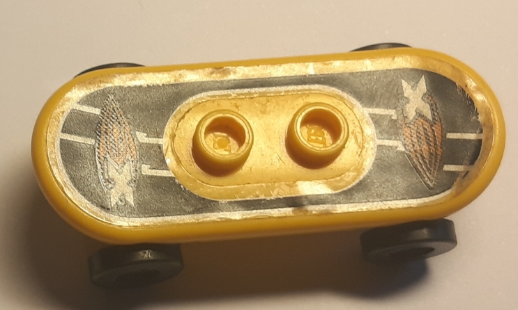 Minifigure, Utensil Skateboard Deck with Island Xtreme Stunts Logo on Black Background Pattern (Sticker) with Black Wheels (42511pb03 / 2496) - Set 6740