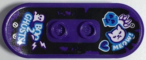 Minifigure, Utensil Skateboard Deck with 'BOO 2 GHOSTS!', Ghost, Lightning Bolts, Skull, Cat Head, Paw Print, Heart, and 'MEOW!' Pattern (Sticker) - Set 70430