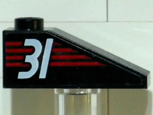 Slope 33 3 x 1 with White Number 31 on Red Stripes Pattern Model Right Side (Sticker) - Set 6639