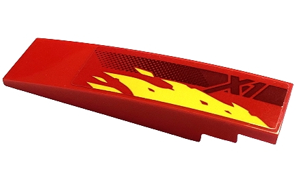 Slope, Curved 8 x 2 with Yellow Flames, Dark Red Stripe and 'X1' Pattern Model Right Side (Sticker) - Set 71737