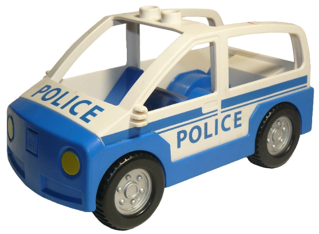 Duplo Car with 2 Studs on Roof, Blue Base and Blue 'POLICE' Pattern